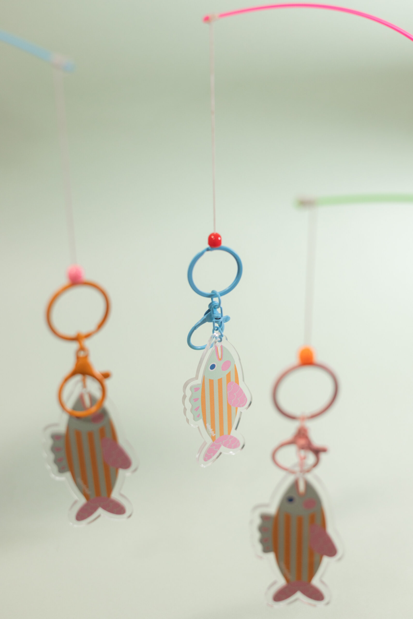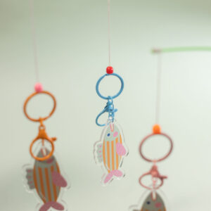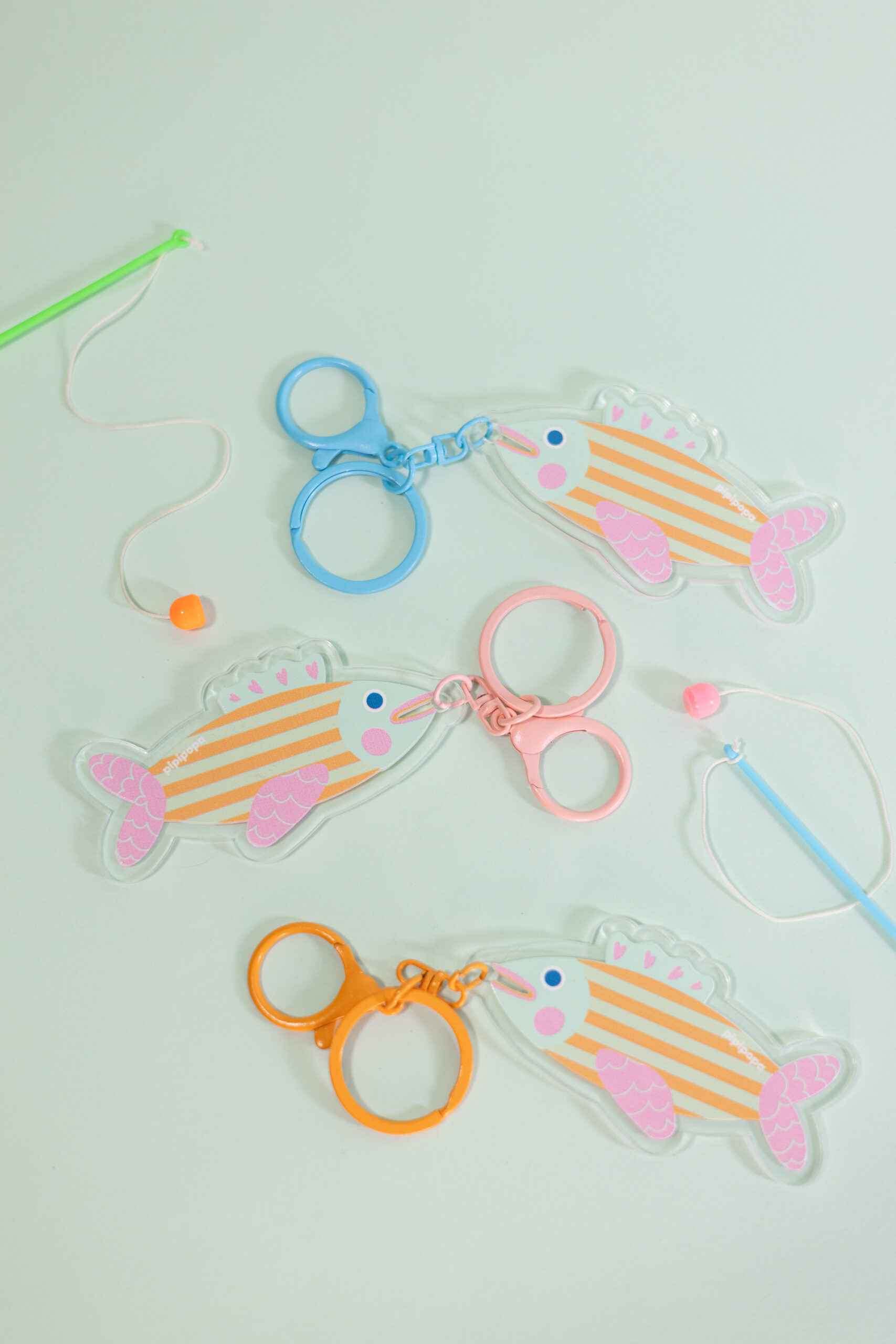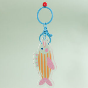 Double-sided printed acrylic keychain with colorful rings. Size: 8.5cm x 4.3 cm. Avoid harsh chemicals, exposure to light, and excessive heat. Wipe gently with a cloth and avoid hitting them to avoid scratches.